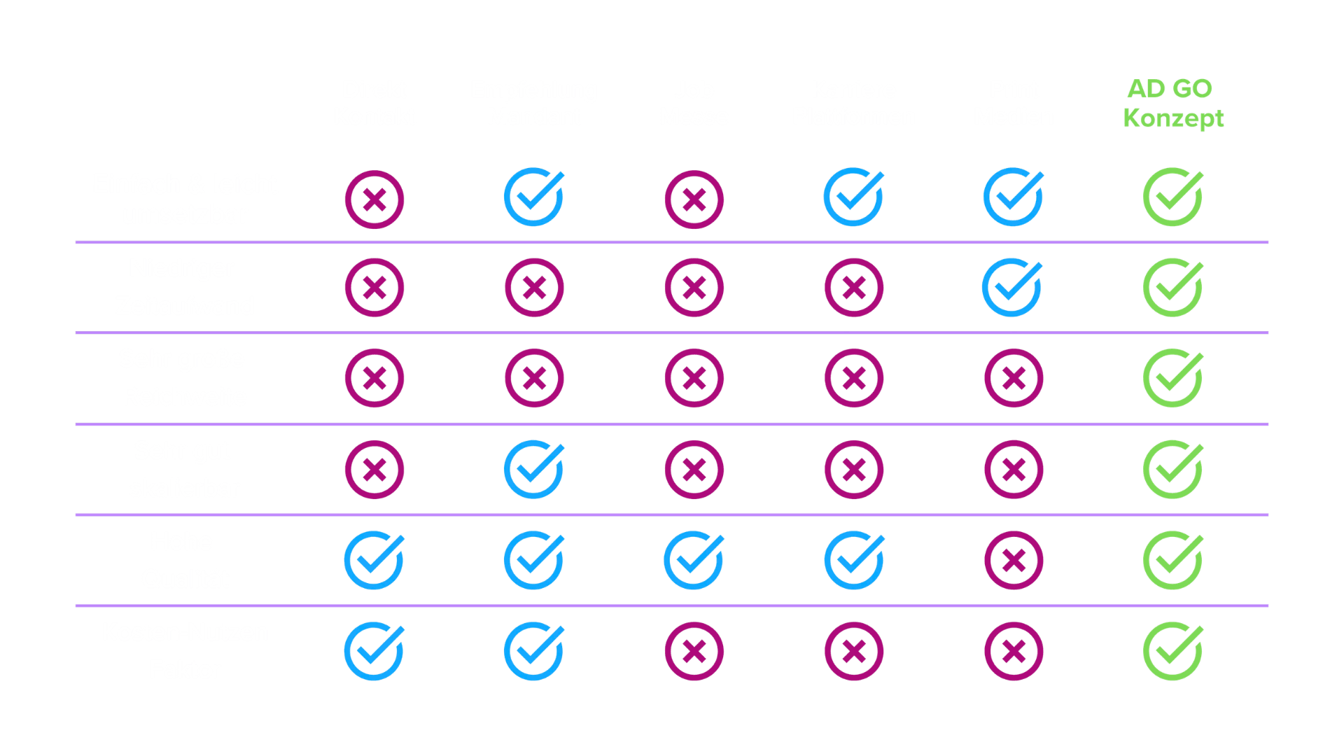 Unser einzigartiges AD GO Konzept ist effizient, hochqualitativ, zeitsparend und auch für dich maximal leicht umsetzbar. Wir bringen dir qualifizierte Kontakte, die deinen Anforderungen entsprechen und du machst nur noch die TIV bzw. das FPG, Deal?